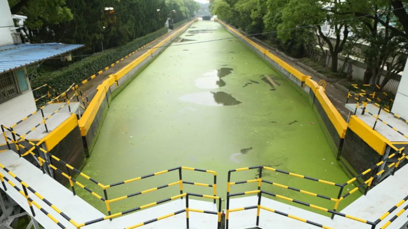 沉淀后的清水被抽出,準(zhǔn)備進(jìn)行進(jìn)一步的處理或者排放。